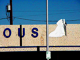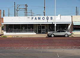 Now that stuff is starting to change, I've finally realized something that I should have realized a long time ago. The city officials and the bankers and the real estate guys didn't leave downtown alone all those years because they saw some value in leaving it alone-- some value in late night bike rides on the old brick streets, or climbing on the roofs of abandoned office buildings and watching the sun rise. They left downtown alone because they saw no value in it. It wasn't worth changing. But it's different now, and all the stuff I thought was irreplacable about downtown turns out to be completely expendable. Like The Famous. It's an old clothing store across from the city bus station, and dates to a whole different downtown. The mannequins in the front windows have been wearing the same clothes for as long as I can remember: dusty tuxedos and sun-bleached dresses that went out of style decades ago. The place is run by old ladies who sell dressy cowboy shirts to Latino guys. Old ladies who are the keepers of some sad, strange secret they'll take with them to the grave. | |