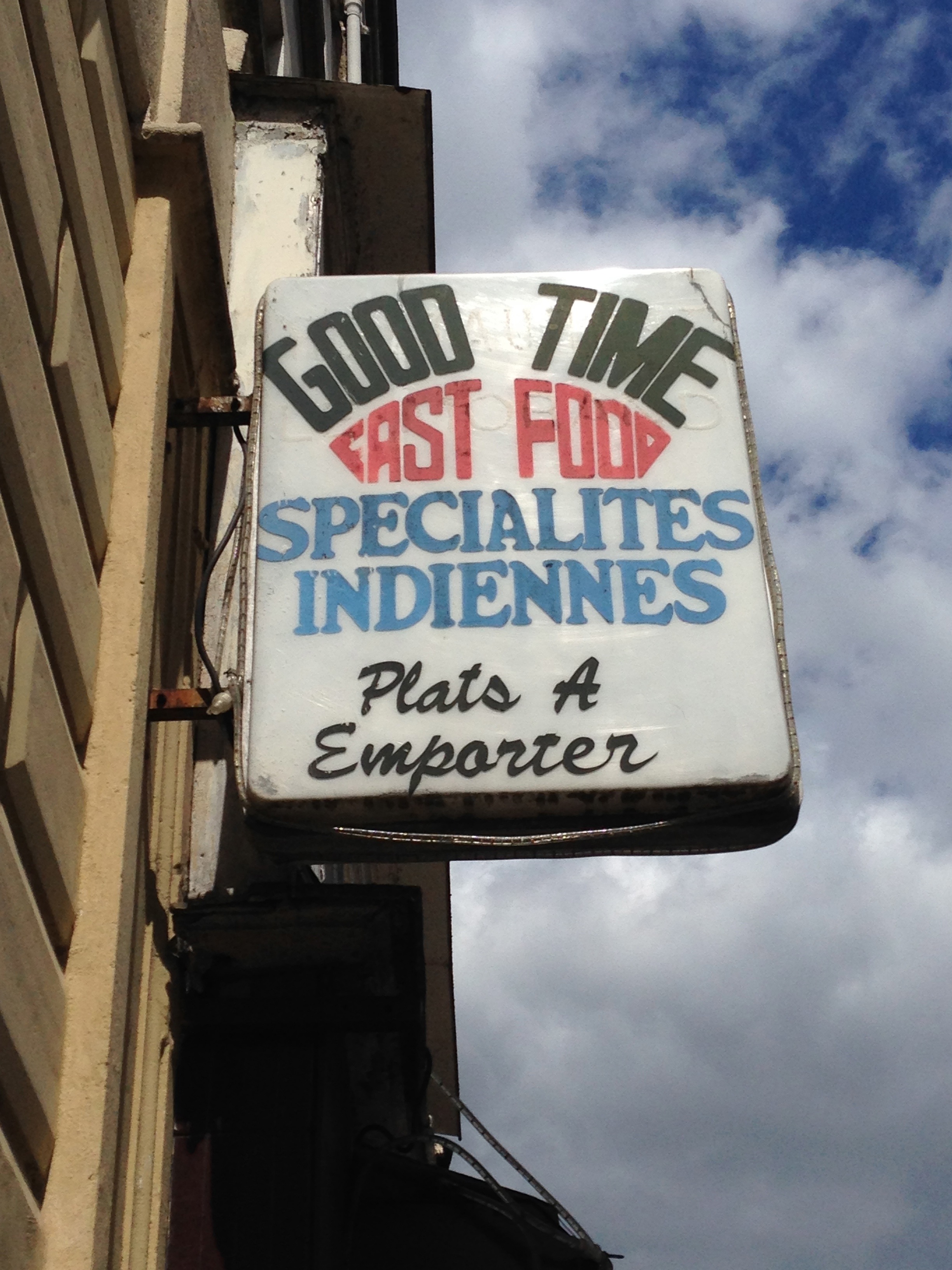 Backlit signs look best when the florescent tubes behind the plastic shell are flickering. This one is in Paris. |
